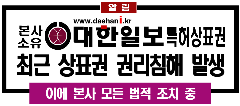 º»»ç ¼ÒÀ¯ <´ëÇÑÀϺ¸> »óÇ¥±ÇÀº2008³âµµºÎÅÍ µî·ÏÃâ¿øÀ» ½ÃµµÇÑ »óÇ¥·Î (ƯÇãû»óÇ¥ Á¦40-0876557È£) Á¦16·ù Á¾¸ñ Àϰ£½Å¹®°ú ½Å¹® 2°³ Ç׸ñ¿¡ °ø½Ä µî·Ï µÇ¾î ÀÖÀ¸¸ç, ÀÎÅͳݽŹ®ÆÇ °æ¿ì (ƯÇãû»óÇ¥ Á¦ 40-0857813È£ Á¦9·ù ÀÎÅͳݽŹ®(³»·Á¹Þ±â °¡´ÉÇÑ ÀüÀڽŹ®) 1°³ Ç׸ñ¿¡ °ø½Ä µî·Ï µÇ¾î ÀÖ´Â »óÇ¥±ÇÀÔ´Ï´Ù. ¶ÇÇÑ º»»ç ¹ßÇà <´ëÇÑÀϺ¸> ¼­¿ïÆÇ°ú <´ëÇÑÀϺ¸>Àü±¹ÆÇÀº °¢°¢ ¹®È­°ü±¤ºÎ µî·Ï (¼­¿ïÆÇ ¼­¿ï-°¡ 00189È£, µî·ÏÀÏÀÚ 2003³â6¿ù27ÀÏ) (Àü±¹ÆÇ ¼­¿ï-00313È£, µî·Ï 2009³â10¿ù9ÀÏ)µÈ °ø½Ä Àϰ£Á¾ÇÕ ¿ÀÇÁ¶óÀÎ ½Å¹®À̸ç, ´Â ÀÎÅͳݽŹ®ÆÇÀ¸·Î µî·Ï¹øÈ£ ¼­¿ï-¾Æ00006È£·Î 2005³â8¿ù8ÀÏÀÚ·Î µî·Ï, ¹ßÇàÇØ¿À°í ÀÖ´Â Á¤Åë ¸ÅüÀÔ´Ï´Ù. ÀÌ¿¡ ±¹¹Î ¿©·¯ºÐµé²²¼­´Â <´ëÇÑÀϺ¸>¿Í °ü·ÃÇÑ ¿©·¯ º¹ÀâÇÑ À¯»ç ¸Åü¿¡ ´õÀÌ»ó È¥¶õ½º·¯¿öÇÏÁö ¾Êµµ·Ï ´çºÎ ¸»¾¸ µå¸³´Ï´Ù.  /(ÁÖ)´ëÇÑÀϺ¸¹ßÇົ»ç ´ëÇ¥ÀÌ»ç. ¹ßÇàÀÎ ±èºÀ±Ù ¿Ã¸².