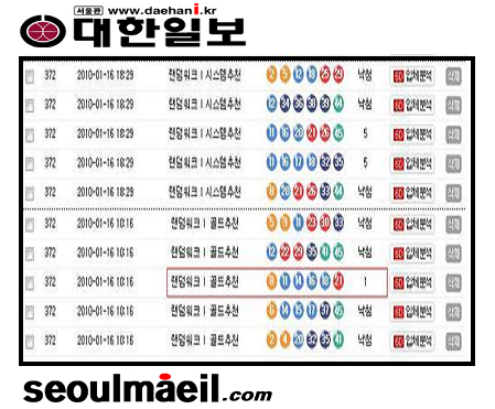 <´ëÇÑÀϺ¸=±èµ¿±Ù º»»çÅëÇÕ±âÀÚ> ÀÛ³â 11¿ù 22ÀÏ¿¡ ½Ç½ÃµÈ 312ȸ ·Î¶Çº¹±Ç Ãß÷¿¡¼ °£¸¸¿¡ 106¾ï9700¸¸¿øÀÇ '³ª Ȧ·Î 1µî ´ç÷ÀÚ°¡' ź»ýÇß´Ù. ´ç½Ã ´ç÷¹øÈ£°¡ 5, 15, 21, 25, 26, 30¹øÀ¸·Î 5ÀÇ ¹è¼ö°¡ 4°³³ª Æ÷ÇԵŠÀÖ¾ú´Âµ¥, ÀÌ·Î ÀÎÇØ ´ç÷±ÝÀ» 'µ¶½Ä'ÇÒ ¼ö ÀÖ¾ú´ø °ÍÀ¸·Î º¸ÀδÙ. ·Î¶Ç±¸¸ÅÀÚµéÀÇ Æ¯¼º»ó ÀÏÁ¤ÇÑ ±ÔÄ¢À» ³ªÅ¸³»´Â Á¶ÇÕÀ» ±âÇÇÇϱ⠶§¹®ÀÌ´Ù. ±×·±µ¥ Áö³ ÁÖ 372ȸ¿¡¼´Â ÀÌ¿Í ´ëÁ¶µÇ´Â Çö»óÀÌ ¹ú¾îÁ³´Ù. ´ç÷¹øÈ£¿¡ 10¹ø´ë°¡ ¹«·Á 4°³³ª Æ÷ÇÔµÅ(8, 11, 14,16, 18, 21) ´ç÷ÀÚ°¡ ¼Ò¼ö¿¡ ±×Ä¥ °ÍÀ̶ó´Â ¿¹»óÀ» µÚ¾þ°í, ¹«·Á 9¸íÀÌ 1µî¿¡ ´ç÷µÈ °Í. ±×°Íµµ ¹«ÀÛÀ§·Î ÃßÃâµÇ´Â 'ÀÚµ¿'ÀÌ ¾Æ´Ñ '¼öµ¿'À» ÅëÇØ 6¸íÀ̳ª 1µî¿¡ ´ç÷µÆ´Ù. ÀÌ Æ¯ÀÌÇÑ Á¶ÇÕÀ» Á÷Á¢ Àû¾ú´Ù´Â ¾ê±âÀÌ´Ù. ´ÜÁö '¿îÀÌ ÁÁ¾Ò´Ù'°í¸¸ ¸»Çϱ⿡´Â ±â¸·Èù ¿ì¿¬ÀÌ ¾Æ´Ò ¼ö ¾ø´Ù. ÀÌ ¹Ì½ºÅ͸®¸¦ Ç®±â À§ÇØ ±¹³» ÇÑ ·Î¶ÇÁ¤º¸»çÀÌÆ®°¡ 372ȸ¿¡¼ '¼öµ¿¼±ÅÃ'À¸·Î 1µîÀ» °Å¸ÓÁå ´ç÷ÀÚ¿ÍÀÇ Á¢ÃËÀ» ½Ãµµ, ½Å¿øÀ» ¹àÈ÷Áö ¾Ê°Ú´Ù´Â Á¶°ÇÀ¸·Î ¾î·Æ°Ô ÀüÈÀÎÅͺ信 ¼º°øÇÒ ¼ö ÀÖ¾ú´Ù. 20´ë û³â »ç¾÷°¡ ÀÌÁرÙ(°¡¸í) ¾¾°¡ ±× ÁÖÀΰøÀ¸·Î, ±×´Â "Áö³ ÁÖ Åä¿äÀÏ ·Î¶Ç Ãß÷ ¹æ¼ÛÀ» ½ÃûÇߴµ¥, ¾îÀ̾ø´Â ¹øÈ£¿¡ 1µî´ç÷Àº ÀÏÂġ Æ÷±âÇÑ »óÅ¿´´Ù"°í ¸»¹®À» ¿¾ú´Ù. ±×¸®°í ¸î ºÐ µÚ, 5µîÀÌ¶óµµ ´ç÷µÆÀ»±î ÇØ¼ »ç³õÀº ·Î¶Ç¿ëÁö¸¦ È®ÀÎÇߴµ¥ 6ÀÚ¸®ÀÇ ´ç÷¹øÈ£°¡ ´Ü¹ø¿¡ ´«¿¡ µé¾î¿Ô´Ù´Â °Í. À̾¾´Â "¹øÈ£°¡ ÈñÇÑÇØ ±â¾ïÇÏÁö ¾ÊÀ¸·Á ÇØµµ ÀúÀý·Î ¿Ü¿öÁ³´Ù"¸ç "±×·±µ¥ ±× ¹øÈ£°¡ °í½º¶õÈ÷ ³» ·Î¶Ç¿ëÁö¿¡ ÀÖ´Ù´Ï... ¸î ¹øÀ» È®ÀÎÇØµµ ¹Ï¾îÁöÁö ¾Ê¾Ò´Ù"¸ç ´ç½Ã »óȲÀ» ¼³¸íÇß´Ù. ±×·¸´Ù¸é À̾¾´Â ±× ¹øÈ£µéÀ» Á÷Á¢ ¼±ÅÃÇßÀ»±î? ÀÌ¿¡ "2³â°£ ·Î¶Ç¸¦ ²ÙÁØÈ÷ ±¸ÀÔÇØ ¿Â ¸¶´Ï¾ÆÀ̱ä ÇÏÁö¸¸, »ý°¢µµ ¸øÇÒ ¹øÈ£µéÀÌ´Ù"¸é¼ "1³â Àü¿¡ °¡ÀÔÇÑ ·Î¶Ç¸®Ä¡¸¦ ÅëÇØ ¹ÞÀº 10Á¶ÇÕ Áß ÇÑ Á¶ÇÕÀÌ ÀûÁßÇÑ °Í"À̶ó°í ¹àÇû´Ù. ±× ¿Ü¿¡µµ µ¿ÀÏ È¸Â÷¿¡¼ 2Á¶ÇÕÀÌ 5µî¿¡ ´ç÷µÆ´Ù. ·Î¶Ç¸®Ä¡(